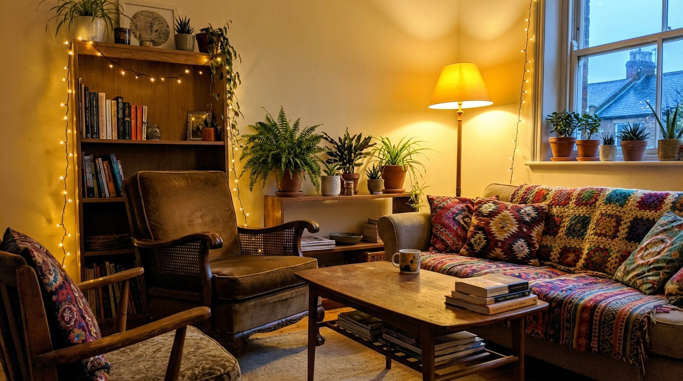 Cozy is a feeling, not a price tag. The apartments that feel most genuinely warm and inviting are layered — multiple light sources, multiple textures, living plants, personal objects that tell a story. These things cost almost nothing individually, and they compound when combined.